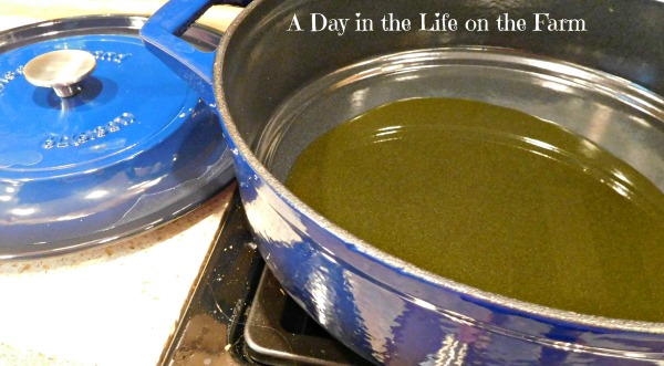 Heat olive oil in a large heavy pot or dutch oven over med high flame. Add the mushrooms and cook until browned. Remove from pot and set aside.
